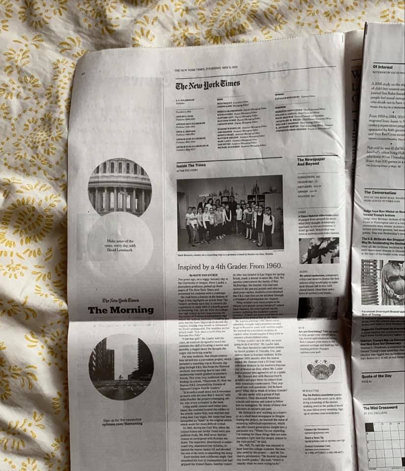 For nine students, that simple instruction turned into a journalism project, which included an on-the-ground reporting trip in Nevada, digging through F.B.I. files from the National Archives and meeting face to face with modern-day fourth graders in southern Russia. This year, they published their findings in a book, “Classroom 15: How the Hoover F.B.I. Censored the Dreams of Innocent Oregon Fourth Graders.”