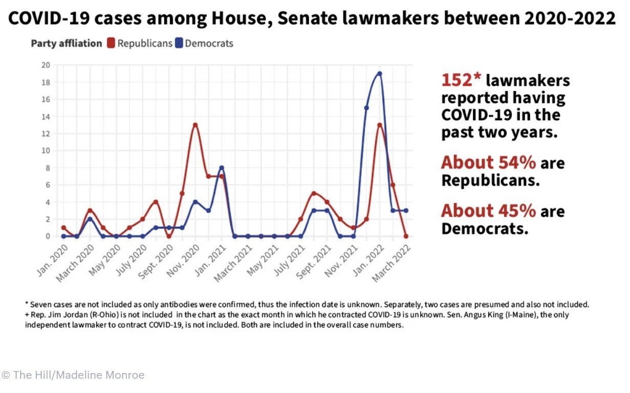 In total, 152 lawmakers, which includes seven who reported having antibodies and two presumed cases, had COVID-19 since January 2020.